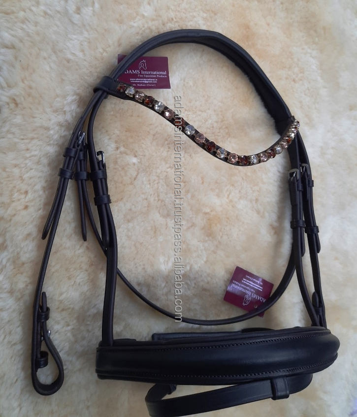 สายบังเหียนหนังม้าประดับคริสตัลวิบวับแผ่นรองนิ่มดีไซน์ใหม่สำหรับนักขี่ม้ากีฬาขี่ม้า