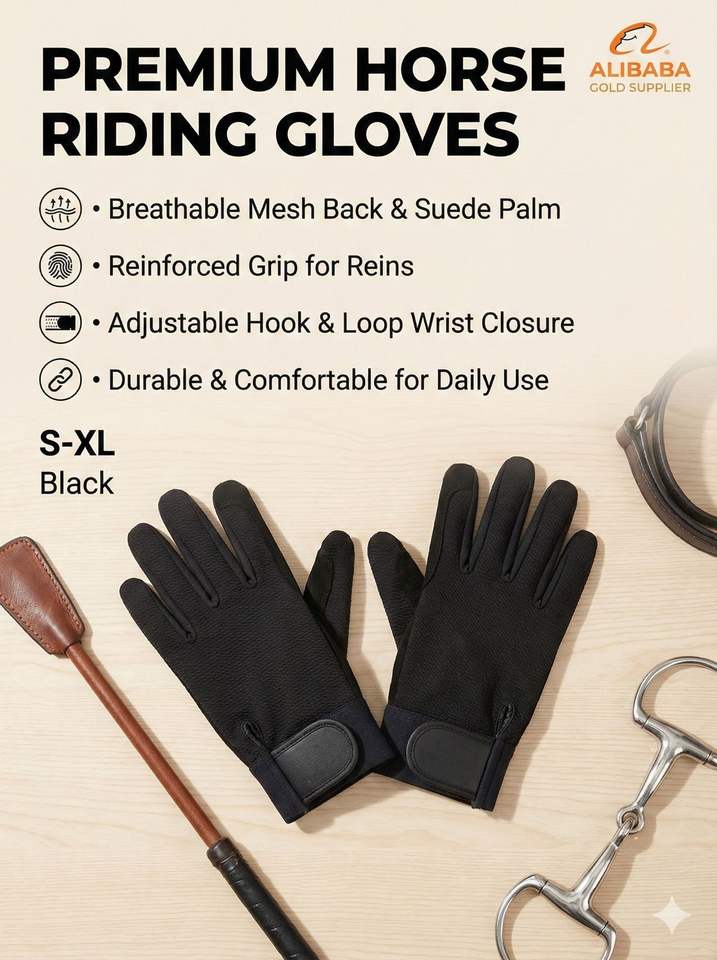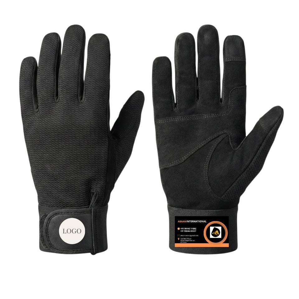 ถุงมือขี่ม้าหนังคุณภาพสูงแบบกำหนดเองสำหรับผู้ชายและผู้หญิง สไตล์ OEM พร้อมโลโก้ สำหรับกีฬากลางแจ้ง สีดำ ปิดด้วยซิป