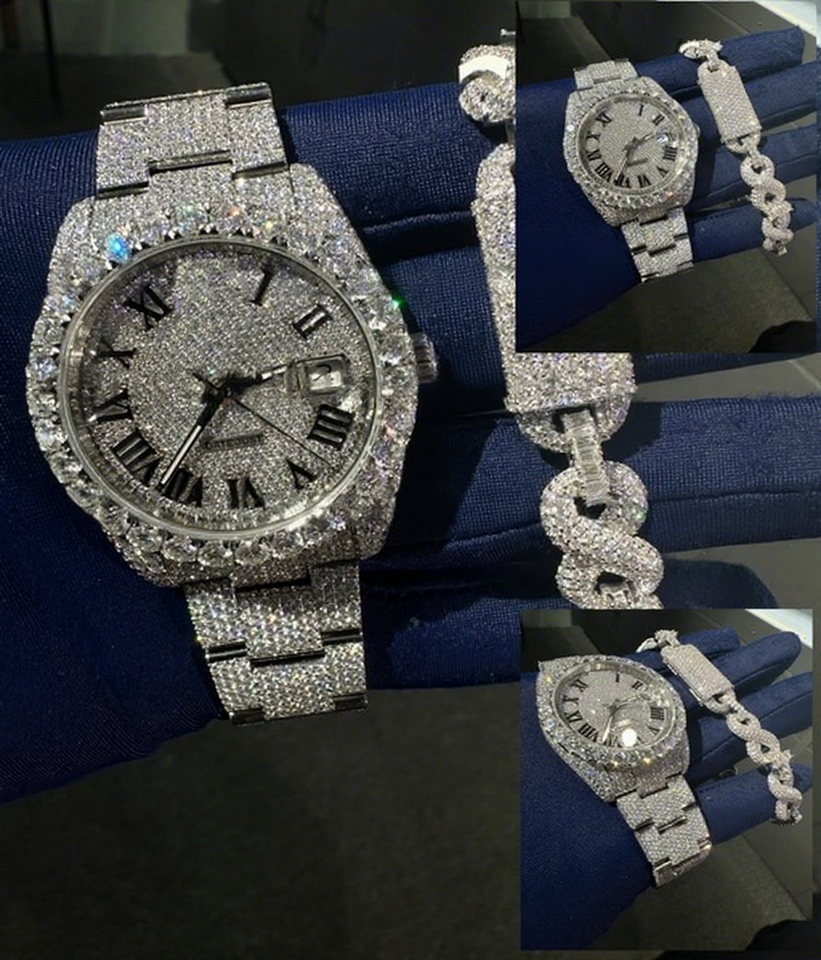 นาฬิกาสีดำหรูหราคุณภาพสูงแบบกำหนดเอง ประดับเพชรแล็บ VVS ระดับพรีเมียม สไตล์ฮิปฮอป ประดับเพชรคิวบิกเซอร์โคเนีย กลไกอัตโนมัติ กระจกโมอิสซาไนต์ ตัวเรือนสแตนเลส