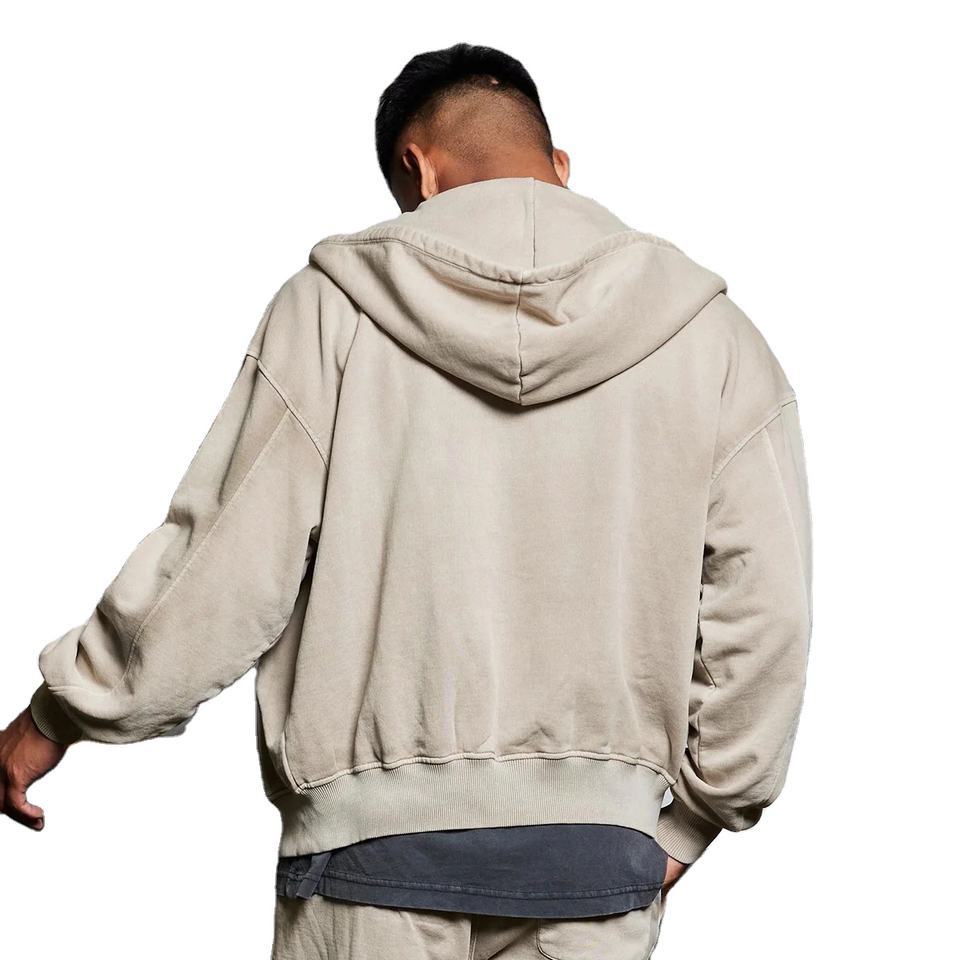 เสื้อฮู้ดดี้ผู้ชายแบบซิปคุณภาพสูงสั่งทำพิเศษ ทรงโอเวอร์ไซส์ ไหล่ตก ผ้าฟลีซคอตตอน 100% ล้างสีแบบแอซิดวอช สำหรับฤดูหนาว