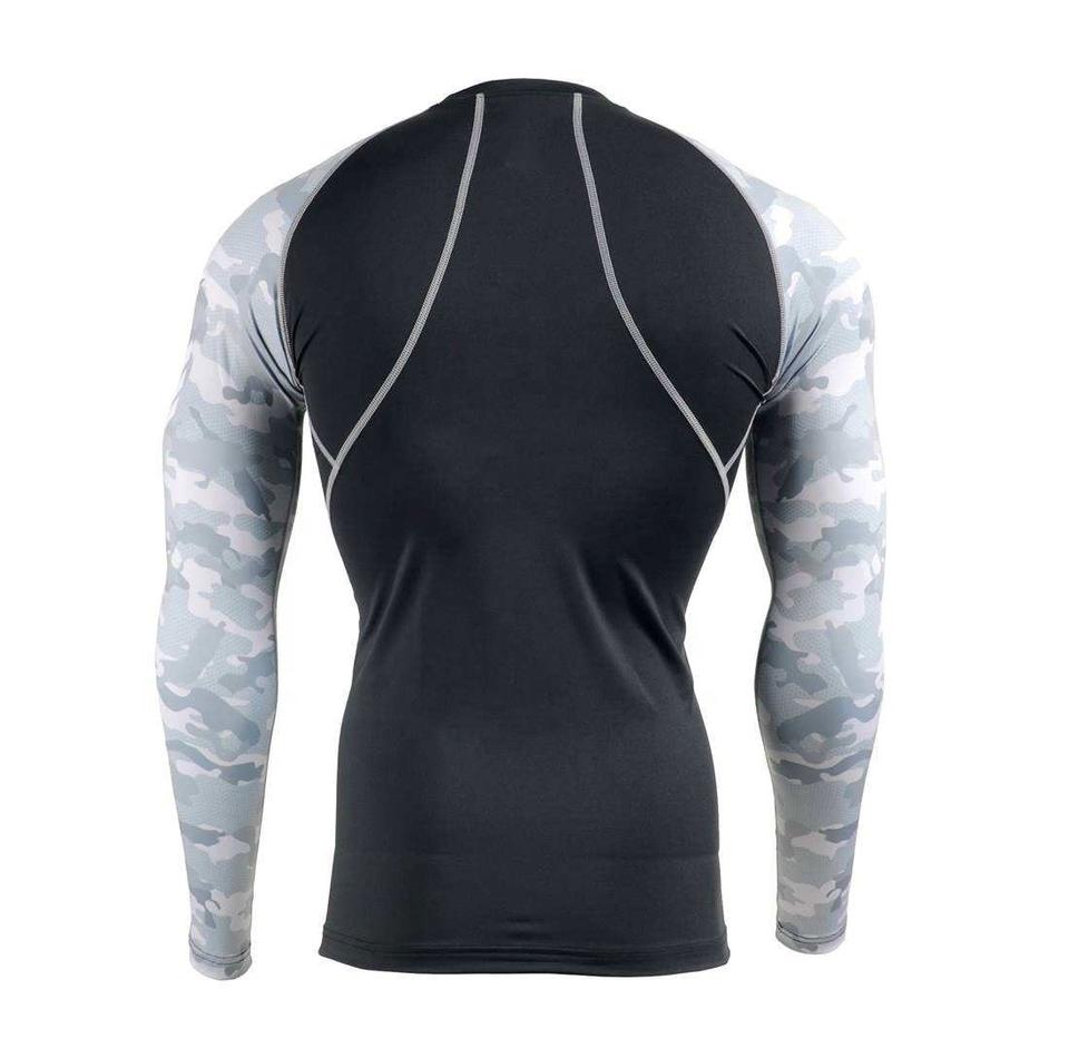 เสื้อแรชการ์ดแขนยาวสำหรับผู้ชายชุดป้องกันผื่นสำหรับฟิตเนสแนบเนื้อ