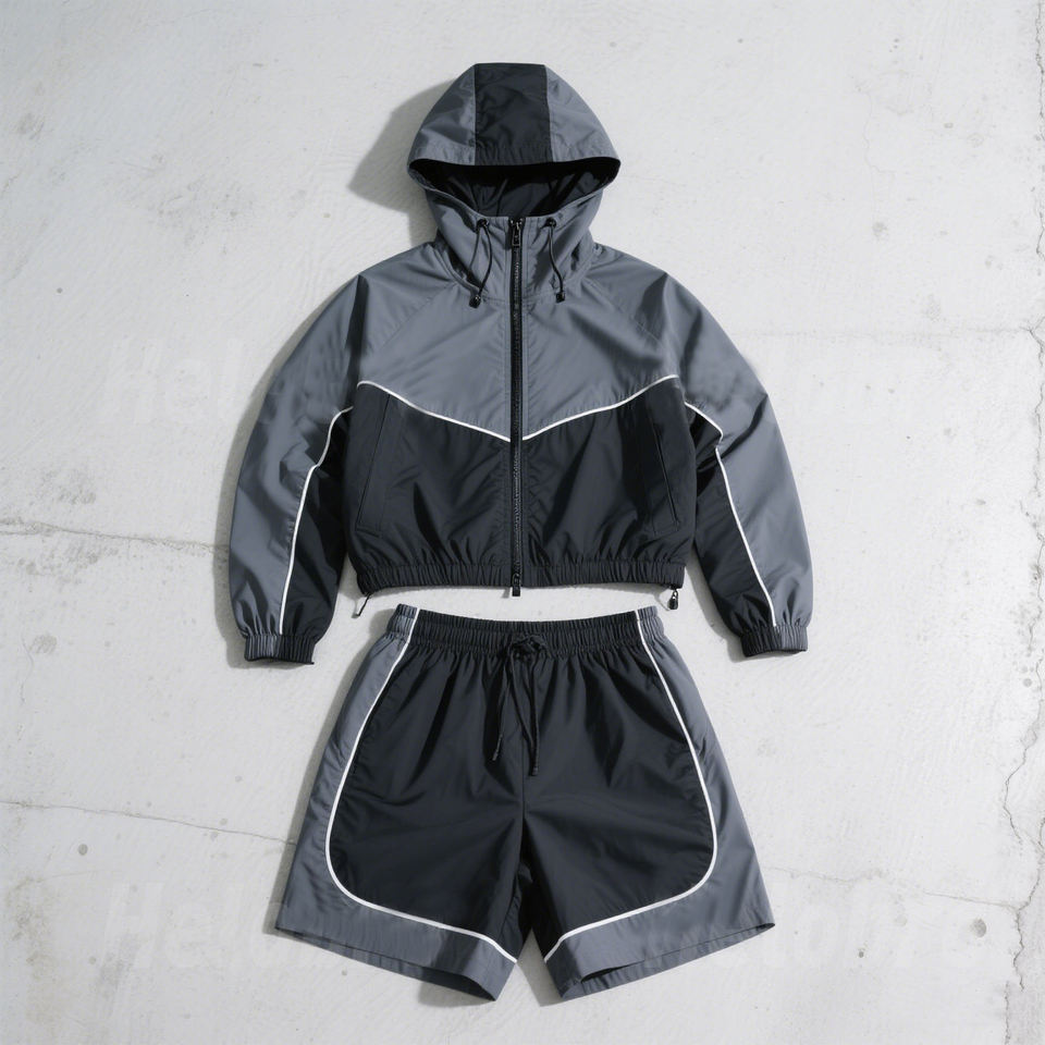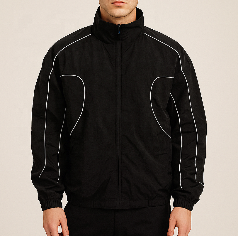 ชุดวอร์มแจ็คเก็ตและกางเกงซิปแบบลำลองคุณภาพสูงสำหรับผู้ชาย ผลิตจากไนลอน กันลม กันน้ำ เป็นมิตรต่อสิ่งแวดล้อม เหมาะสำหรับเล่นกีฬา