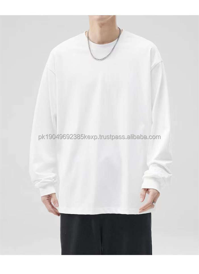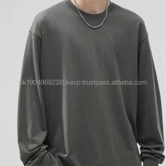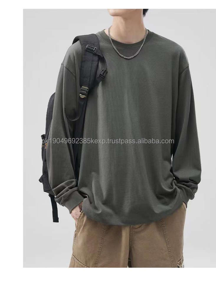 เสื้อยืดคอกลมแขนยาวสำหรับผู้ชายทรงโอเวอร์ไซส์ผ้าคอตตอน100% 260g ว่างเปล่าสีทึบออกแบบได้ตามต้องการ