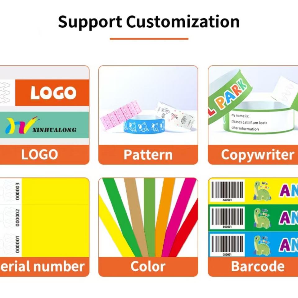 สายรัดข้อมือกระดาษไทเวคดูปองท์แบบใช้แล้วทิ้งกันน้ำคุณภาพสูงแบบกำหนดเองสำหรับงานปาร์ตี้ คอนเสิร์ต โฮโลแกรม ฟลูออเรสเซนต์