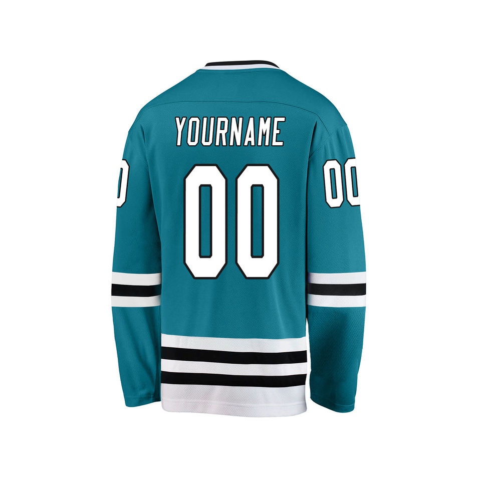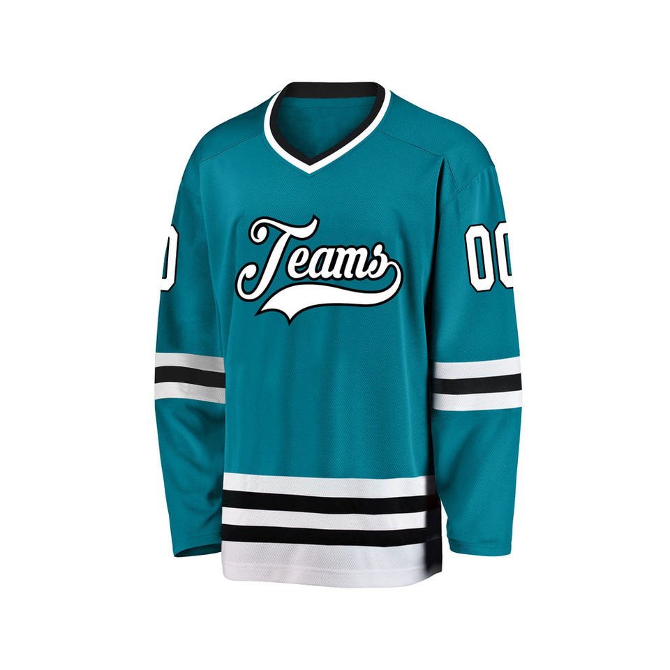 ชุดเสื้อเจอร์ซีย์โพลีเอสเตอร์ฮ็อกกี้น้ำแข็งพิมพ์ลายซับลิเมชันและปักโลโก้ชุดเสื้อฮอกกี้น้ำแข็งสำหรับบุคคล