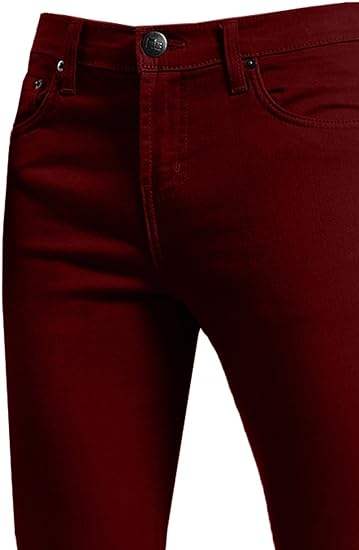 กางเกงยีนส์เดนิมทรงปกติคุณภาพสูงสำหรับผู้ชาย แฟชั่นสตรีทแวร์ ระบายอากาศได้ดี ยืดหยุ่น สีแดงเลือดหมู
