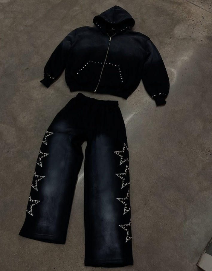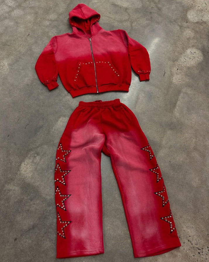 ชุดวอร์มผู้ชายทรงโอเวอร์ไซส์แบบวินเทจประดับคริสตัล งานคุณภาพสูงสั่งทำพิเศษ ทรงปกติ พร้อมเชือกผูกเอว เหมาะสำหรับฤดูหนาว