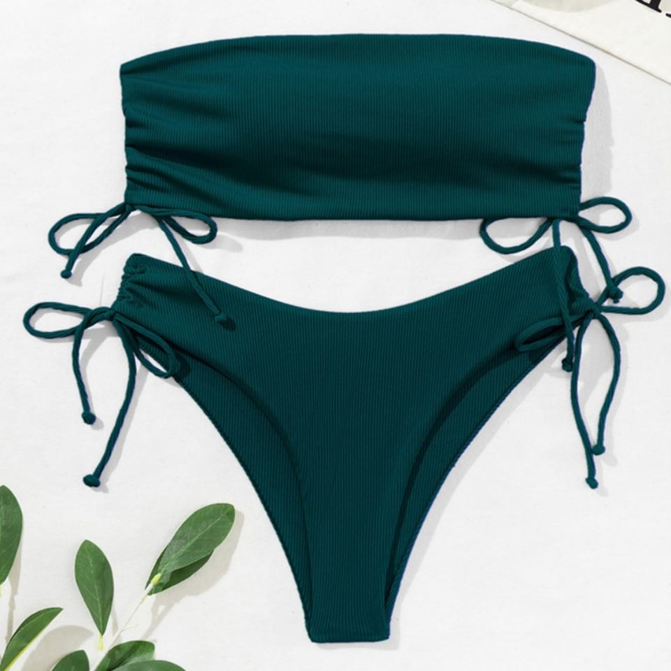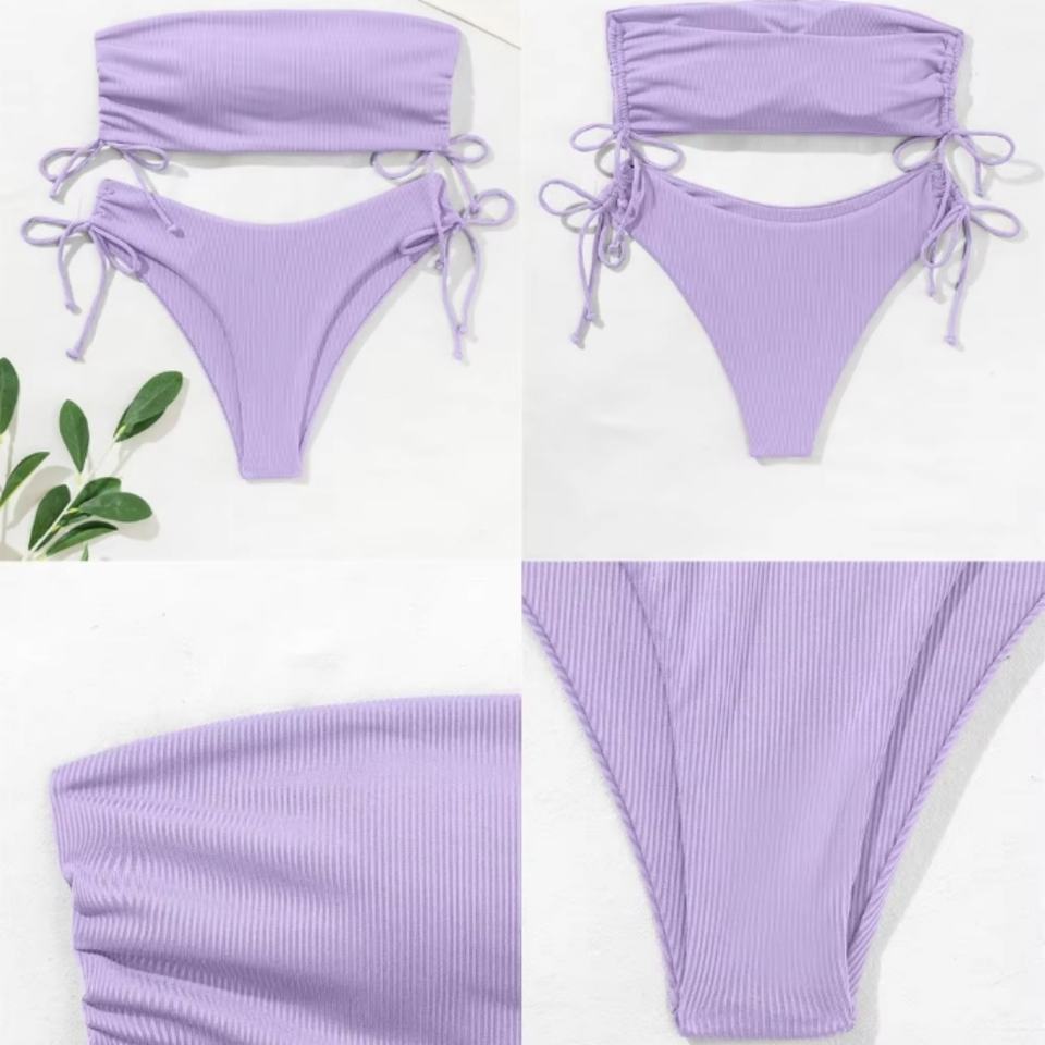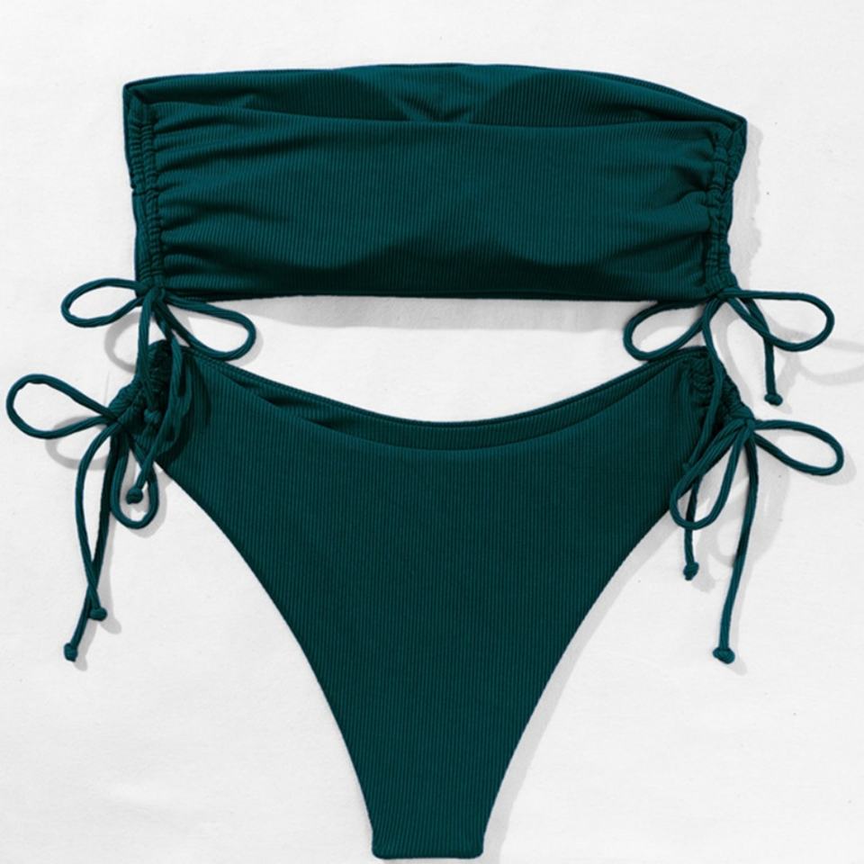Custom High Quality Ribbed Swimsuit Adjustable High Waist Women Bikini Sexy String Bikini Beachwear
