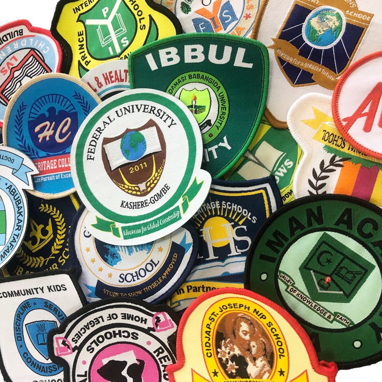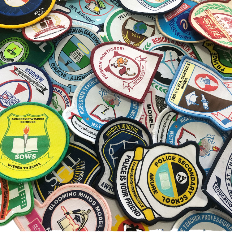 ป้ายเย็บติดชุดนักเรียนคุณภาพสูงแบบกำหนดเอง ป้ายปักบนผ้าโพลีเอสเตอร์ ปราศจากนิกเกิล รูปทรงกลม