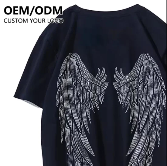 เสื้อยืดผ้าฝ้ายพิมพ์ลายติดเพชรสำหรับผู้ชายเสื้อยืดผ้าฝ้าย100% กราฟิกปักโลโก้พลอยเทียมประกายตามสั่ง