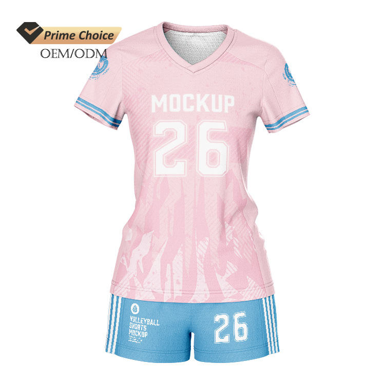 เสื้อวอลเลย์บอลแขนสั้นสำหรับผู้หญิงเสื้อทีมวอลเลย์บอลสีชมพู
