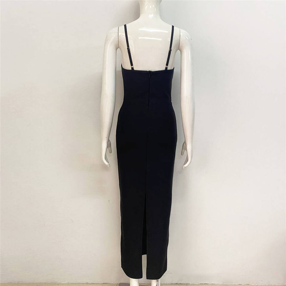 เดรสยาวผ้าไหมเปิดหลังสำหรับผู้หญิงชุดปาร์ตี้เซ็กซี่สีดำหรูหราบางกระชับ