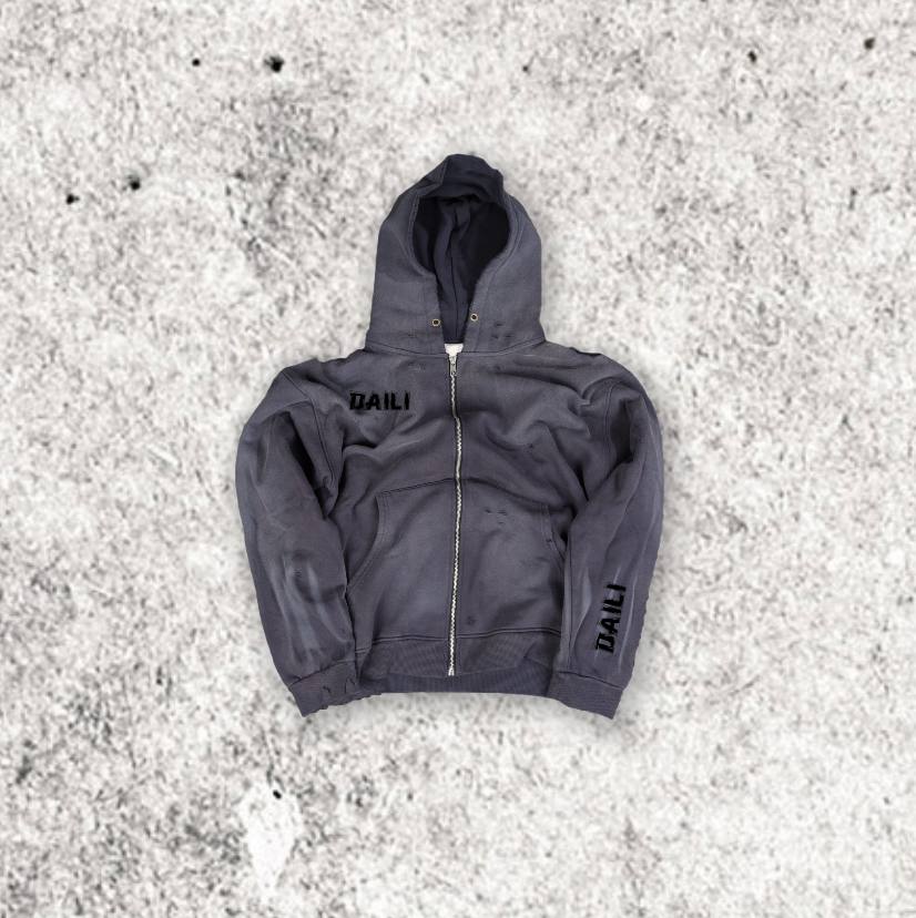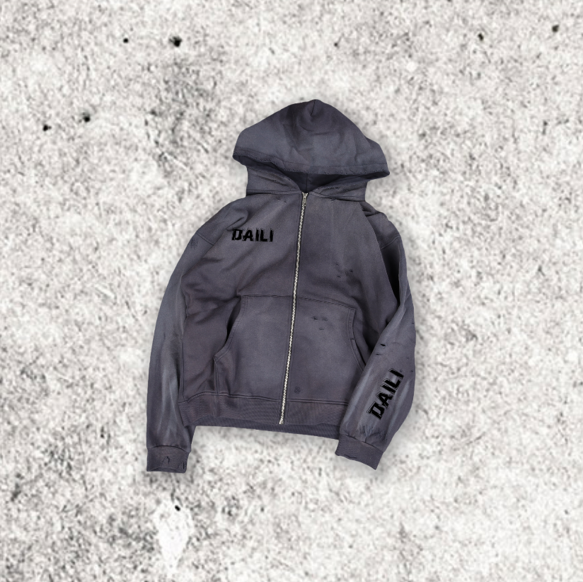Custom High Quality Solid Zipper-Up Streetwear Hoodie Printing Logo Blank Vintage Double Layer Acid Wash Sun Faded Distressed