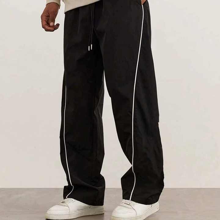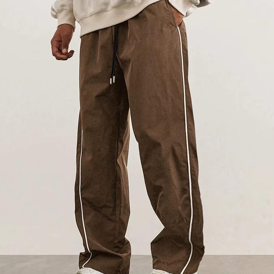 กางเกงวอร์มทรงแบ็กกี้โอเวอร์ไซส์สำหรับผู้ชายกางเกงผ้าไนลอนโพลีเอสเตอร์แถบสะท้อนแสงสำหรับใส่วิ่งเล่นกีฬา