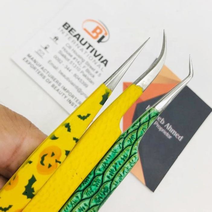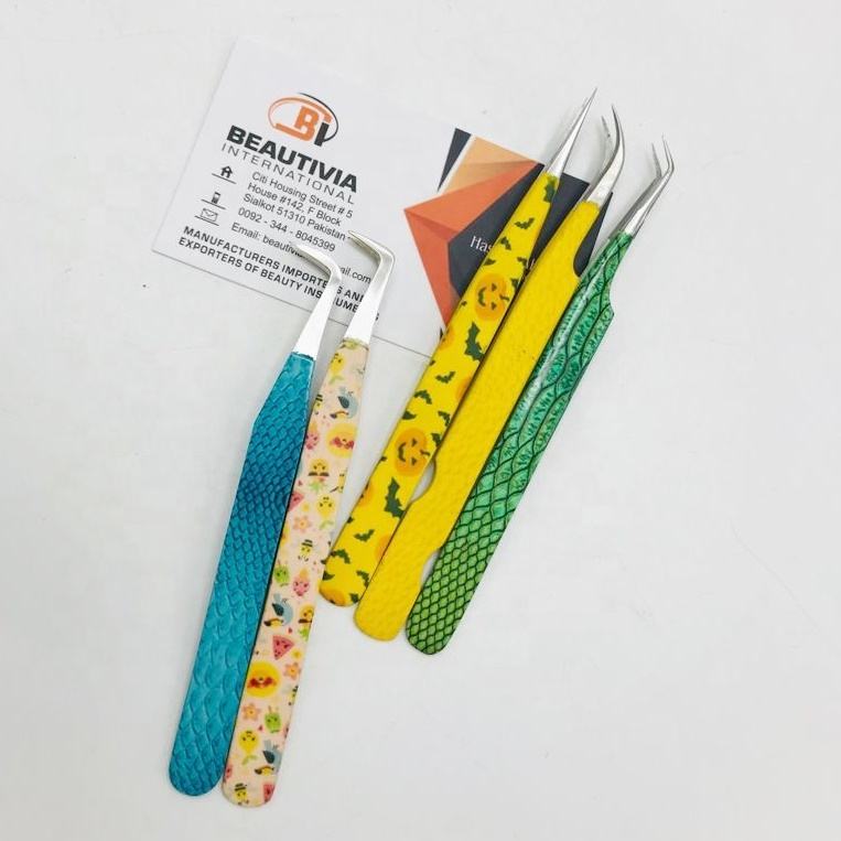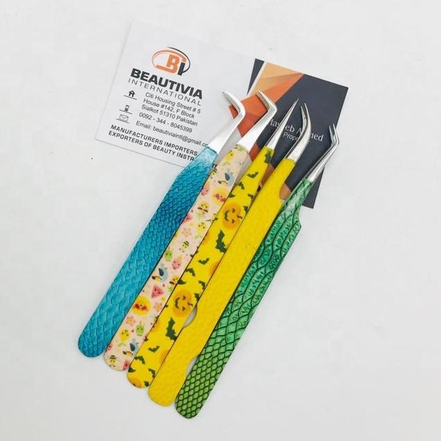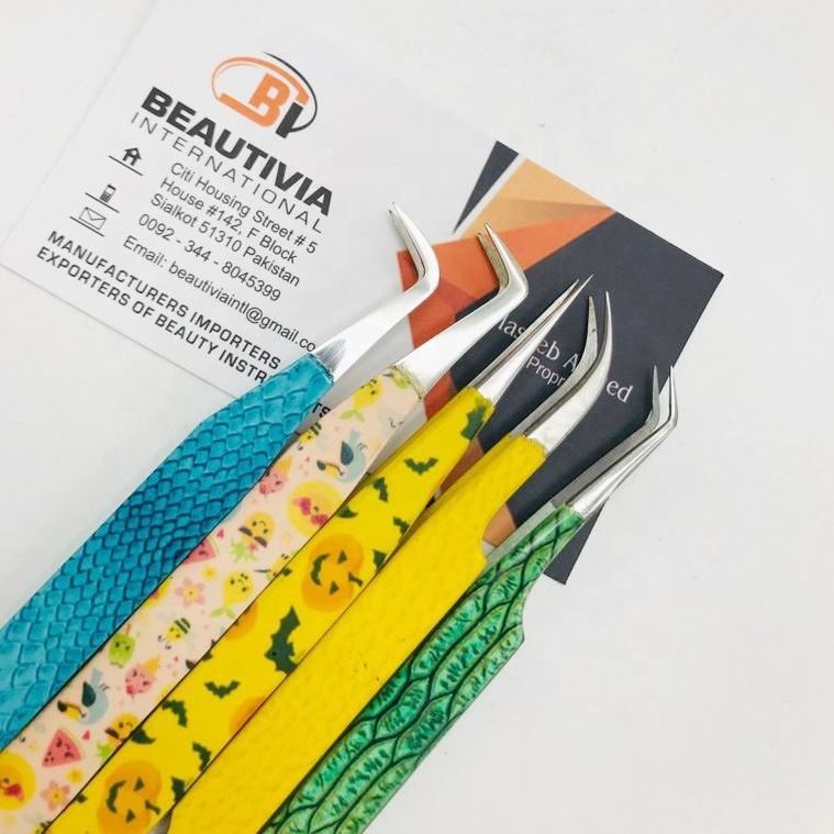 แหนบต่อขนตาสแตนเลสคุณภาพสูงแบบกำหนดเองปลายไฟเบอร์เคลือบกระดาษแบบยั่งยืนติดฉลากส่วนตัวสำหรับทำเล็บ