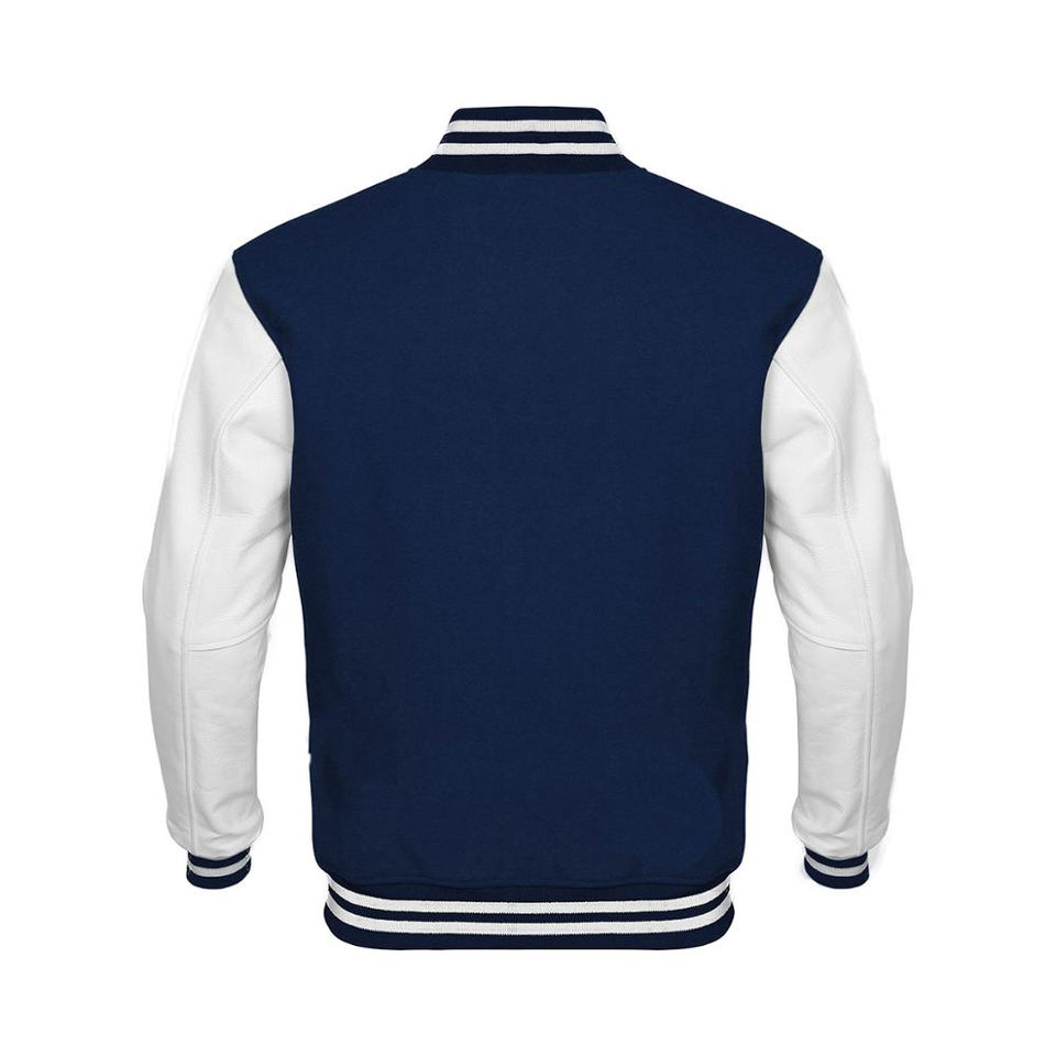 แจ็กเก็ตหนังสีขาวคอปกตั้งสำหรับผู้ชายแจ็กเก็ตเบสบอลเลตเทอร์แมนมหาวิทยาลัย