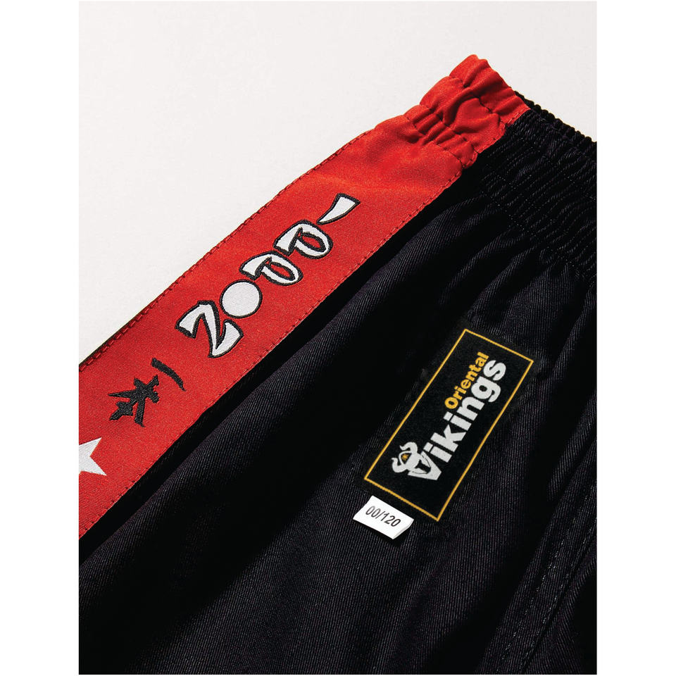 ชื่อผลิตภัณฑ์:ชุดนักเรียนคาราเต้สีดำ/ แดงแบบดั้งเดิม (ผ้า7.5ออนซ์)