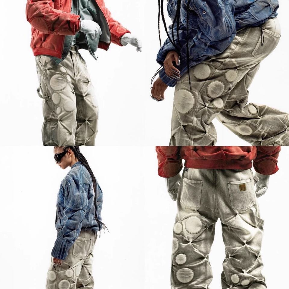 กางเกงยีนส์ทรงแบ็กกี้ฟอกสีสไตล์วินเทจฮิปฮอปคุณภาพสูงสำหรับผู้ชาย
