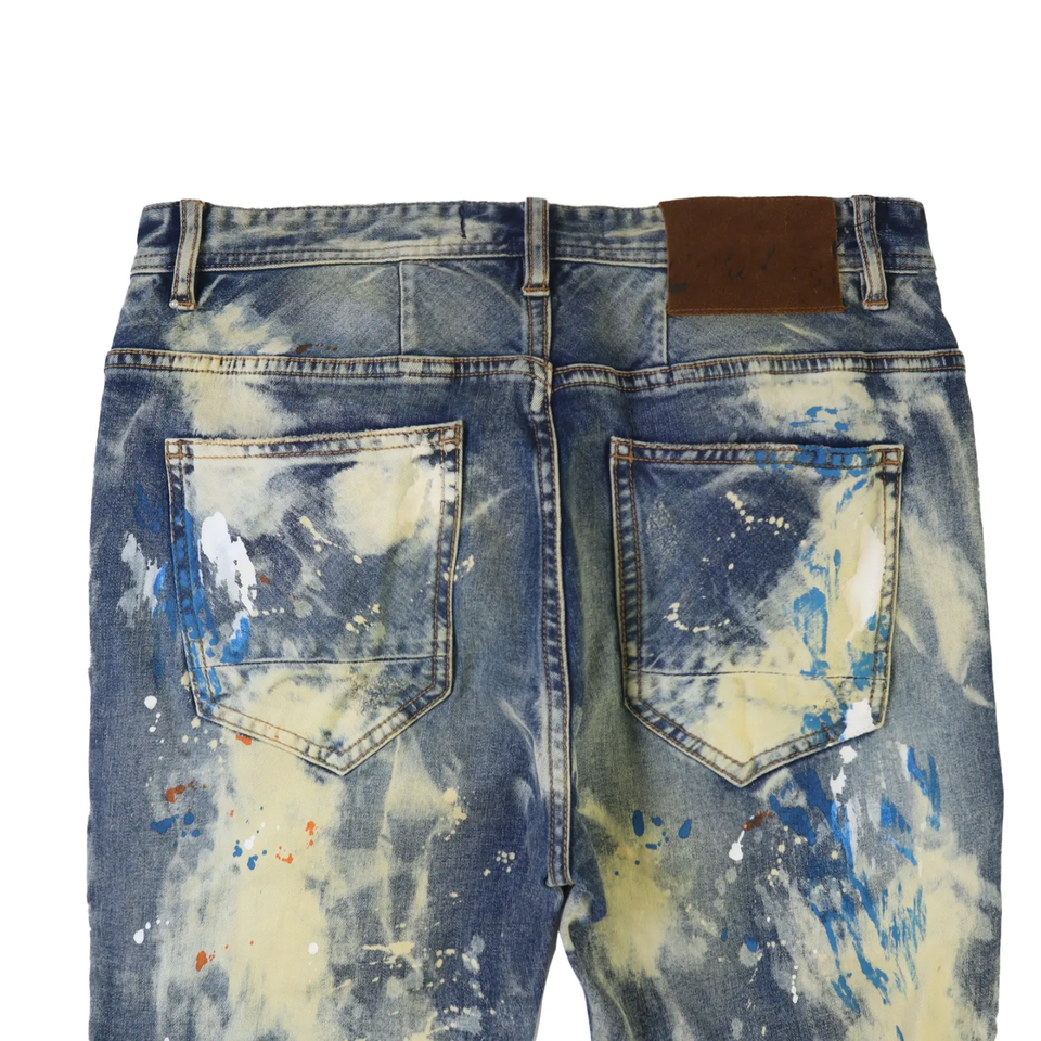 กางเกงยีนส์ผ้าเดนิมซิลเวดจ์คุณภาพสูงแบบวินเทจฟอกสีพิเศษสำหรับผู้ชาย