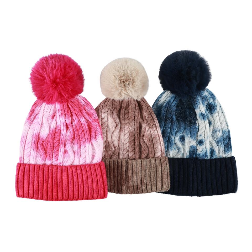 หมวกบีนนี่ไหมพรมถักหนานุ่มคุณภาพสูงสำหรับฤดูหนาว ทำจากขนแกะเมอริโนผสมอะคริลิก แต่งพู่ห้อย ป้ายหนัง สำหรับผู้หญิง รุ่นใหม่