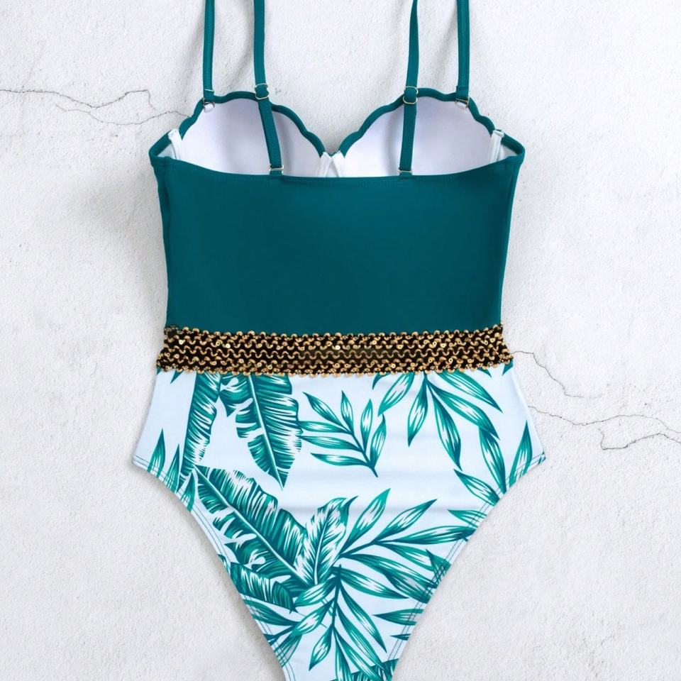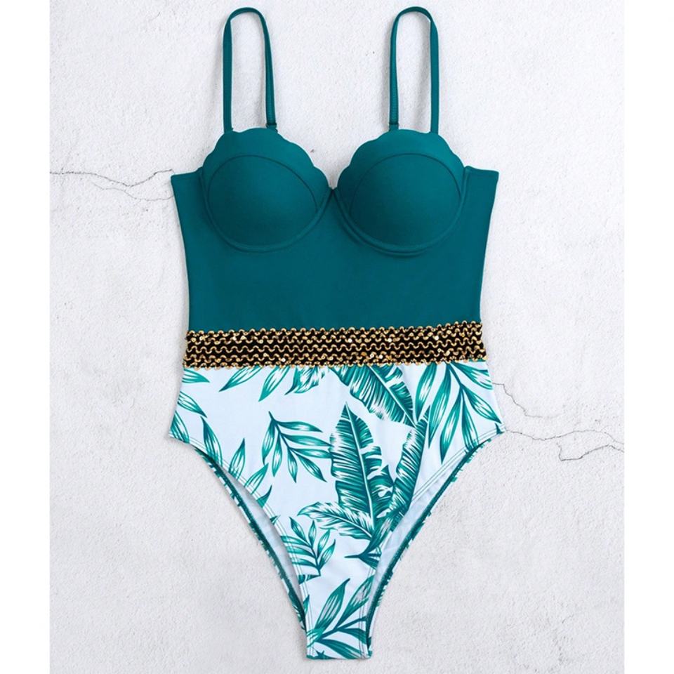 ชุดว่ายน้ำผู้หญิงแบบ 2 ชิ้น คุณภาพสูง ดีไซน์พิมพ์ลาย ทรงบิกินี่ขาสูง ช่วยยกกระชับ แห้งเร็ว