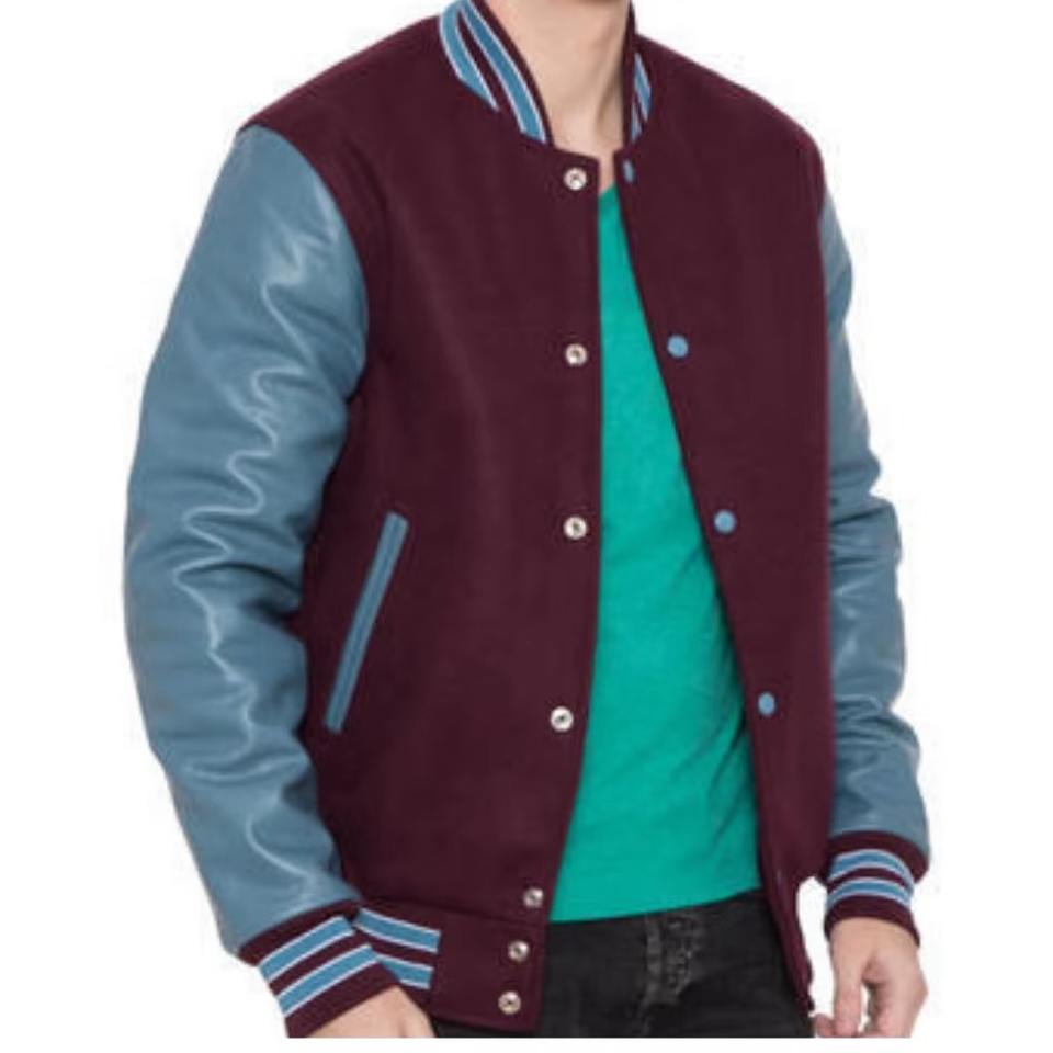 เสื้อแจ็คเก็ตบอมเบอร์วาร์ซิตี้แบบมีปกตั้ง ทำจากขนสัตว์คุณภาพสูง แขนหนังแท้ ปักลาย ระบายอากาศได้ดี แห้งเร็ว