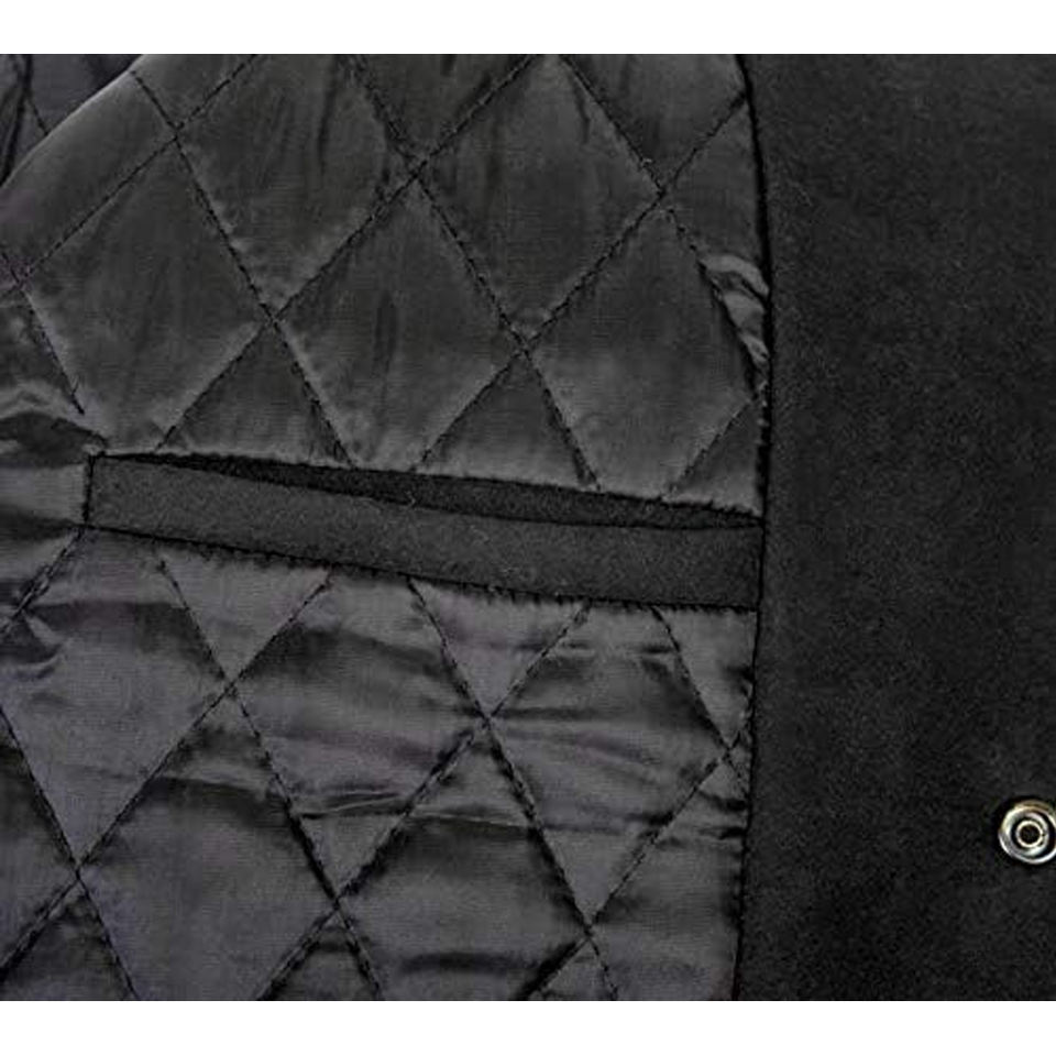 แจ็กเก็ตผ้าขนสัตว์คุณภาพสูงสำหรับผู้ชายคอตั้งแขนเสื้อหนังผ้ากำมะหยี่ปักลายโลโก้ด้านหน้า