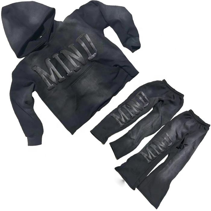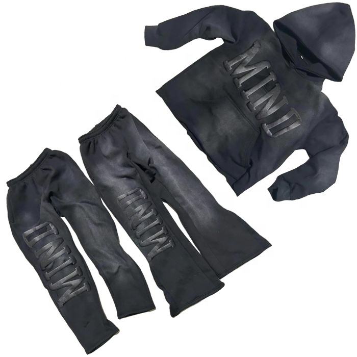 ที่กําหนดเองที่มีคุณภาพสูงซ้อนกางเกงวอร์มเหงื่อชุดที่กําหนดเองพัฟพิมพ์พืชยอดนิยมเสื้อฮู้ดและกางเกงวอร์มเปลวไฟชุดสําหรับผู้ชาย