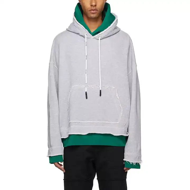 เสื้อฮู้ดผ้าเกล็ดปลาแบบสวมหัวทรงหลวมมีฮู้ดสองชั้นแบบสวมหัวมีขอบและกระเป๋า