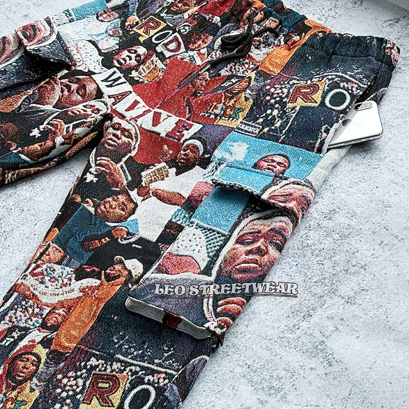 กางเกงผ้าทอสตรีทแฟชั่นสำหรับผู้ชาย สไตล์ฮิปฮอป แร็ปเปอร์ กางเกงคาร์โก้ทรงหลวม มีกระเป๋าหลายช่อง กางเกงลำลองผู้ชาย