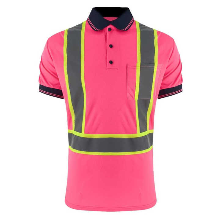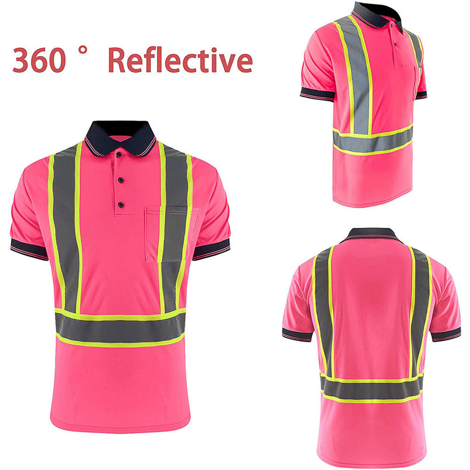 เสื้อโปโลผู้ชายแขนสั้นครึ่งแขนเสื้อทำงาน Hi viz แบบกำหนดเองความปลอดภัยสะท้อนแสงมองเห็นได้ชัดเจน