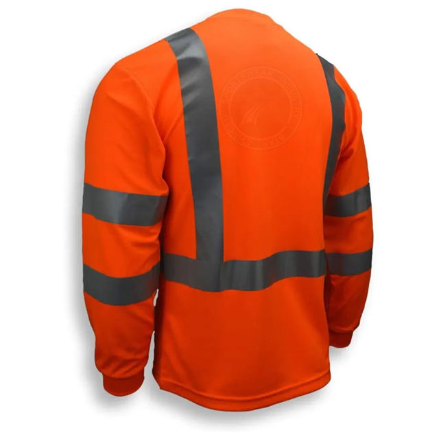 เสื้อยืดแขนยาวสำหรับผู้ชายเสื้อทำงาน Hi Viz มีกระเป๋าเสื้อยืดเพื่อความปลอดภัยสะท้อนแสงมองเห็นได้ชัดเจนแบบกำหนดเอง