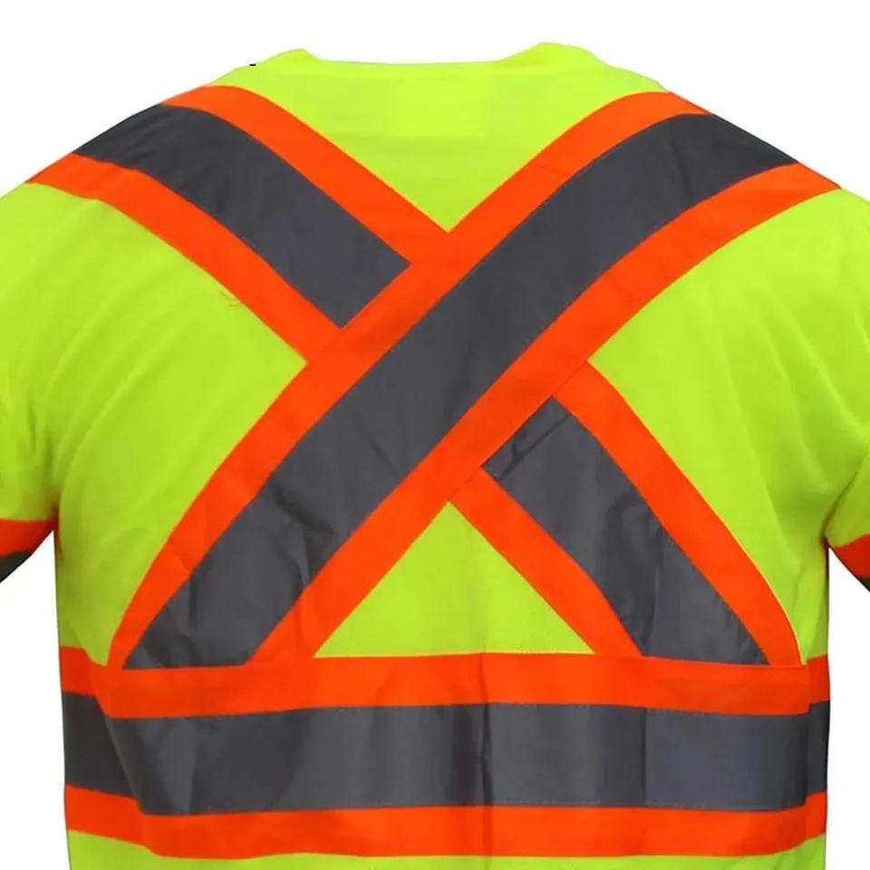 เสื้อยืดแขนสั้นสำหรับผู้ชายเสื้อทำงาน Hi viz เสื้อทำงาน2025ความปลอดภัยสะท้อนแสงครึ่งแขนเสื้อครึ่งก่อสร้าง