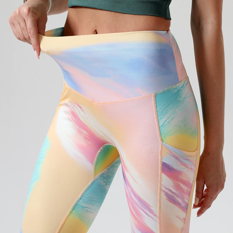 กางเกงเลกกิ้งโยคะเอวสูงแบบไม่มีตะเข็บด้านหน้า ทรงรัดก้น ลายพิมพ์ไทได ผ้าถักไร้รอยต่อ มีกระเป๋า สำหรับผู้หญิง