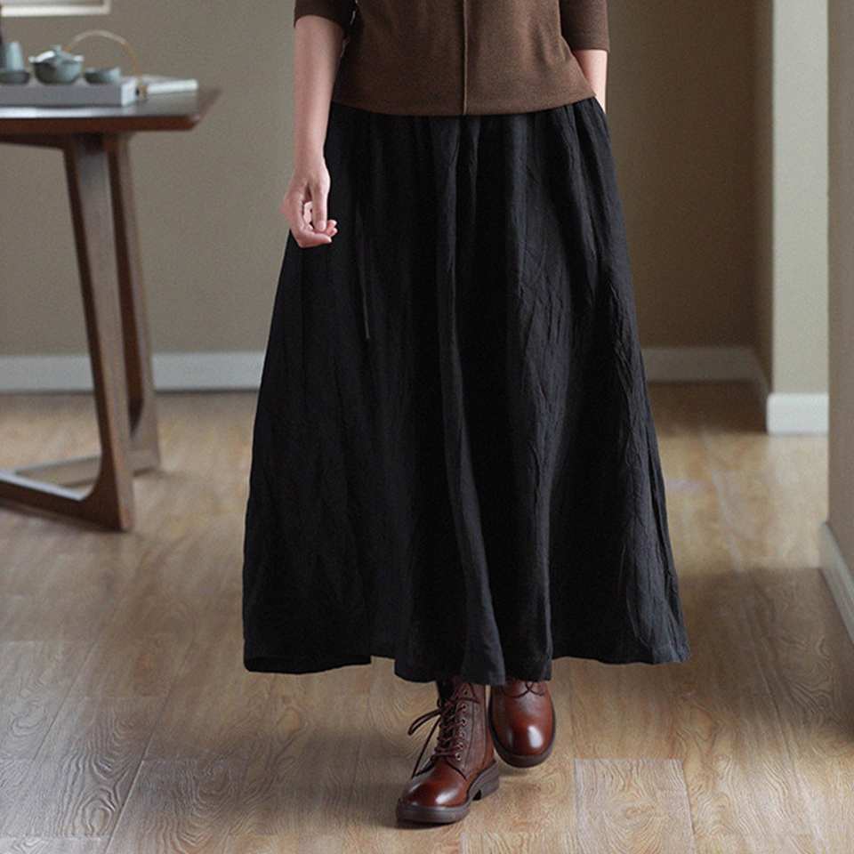 ชื่อผลิตภัณฑ์:กระโปรงยาวผ้าลินินสีทึบมีกระเป๋า