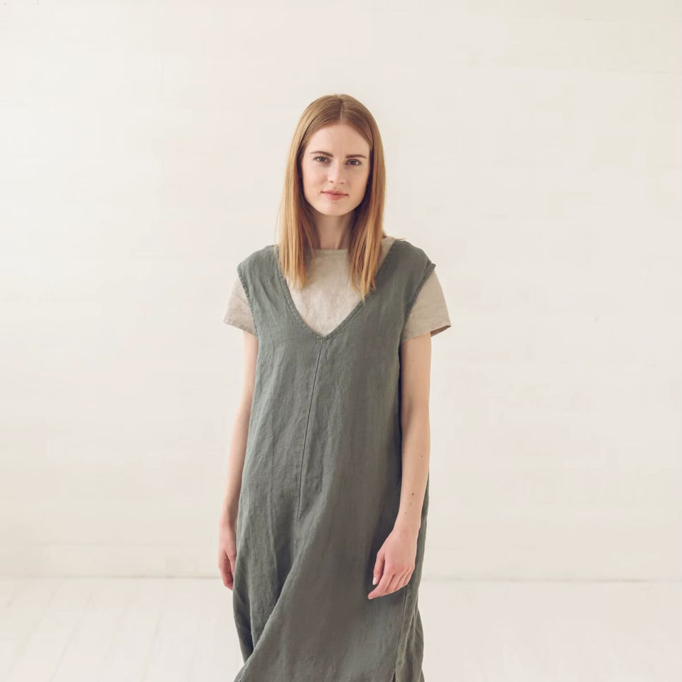 ชุดเดรสผ้าลินินทรงยาวสำหรับฤดูร้อน