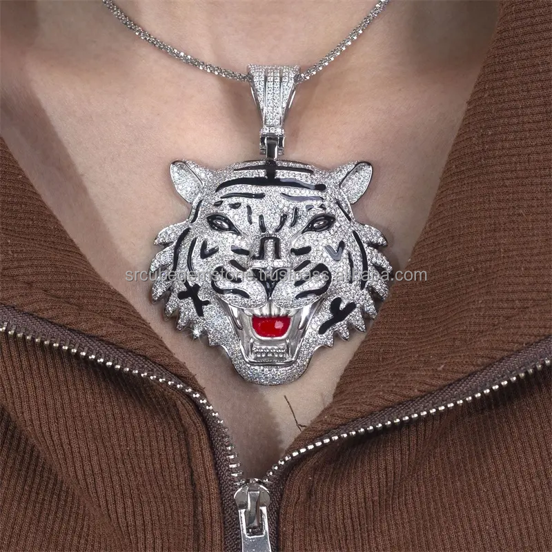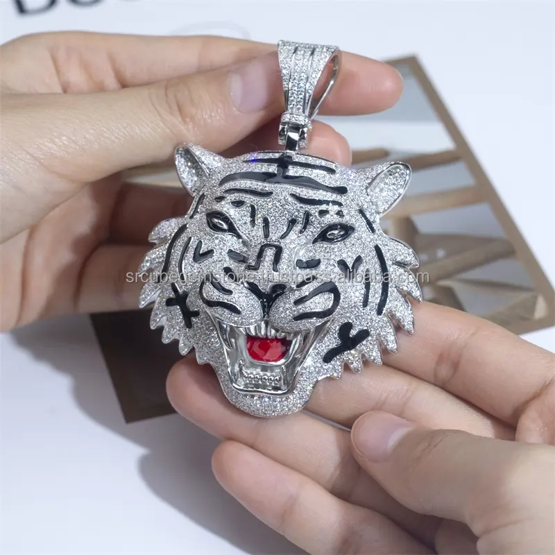 จี้สร้อยคอรูปเสือประดับเพชรโมอิสซาไนต์แบบฮิปฮอปสั่งทำพิเศษ ชุบทอง 18k โลหะผสมเงินแท้ 925 ได้รับการรับรองจาก IGI