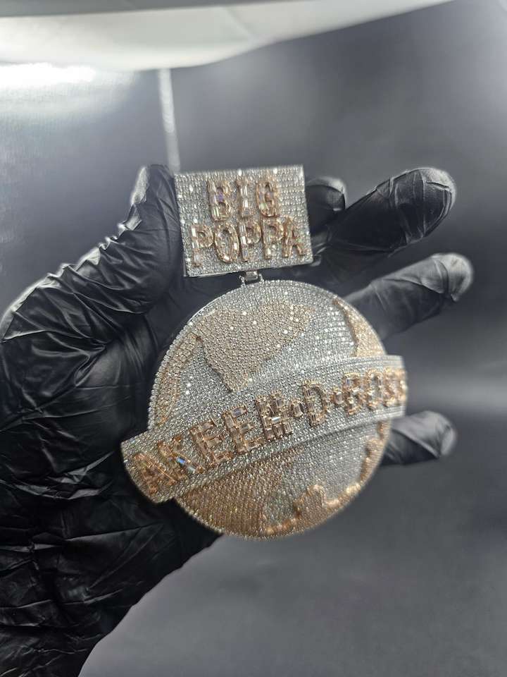 จี้ตัวอักษรฮิปฮอปแบบวงกลมประดับเพชร เครื่องประดับเงินแท้ 925 สองสี จี้เพชรโมอิสซาไนต์ VVS สไตล์แร็ปเปอร์