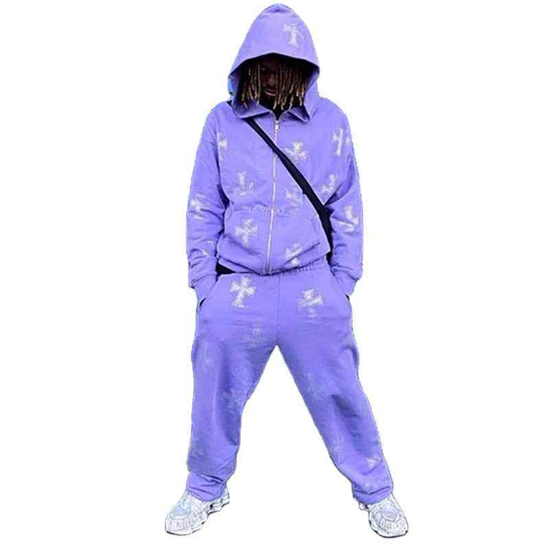 เสื้อฮู้ดมีซิปของผู้ชายเสื้อสเวตเชิ้ตแนวสตรีทฮิปฮอปผ้าฝ้าย100% แฟชั่นฤดูหนาวสไตล์เมืองประดับพลอยเทียม