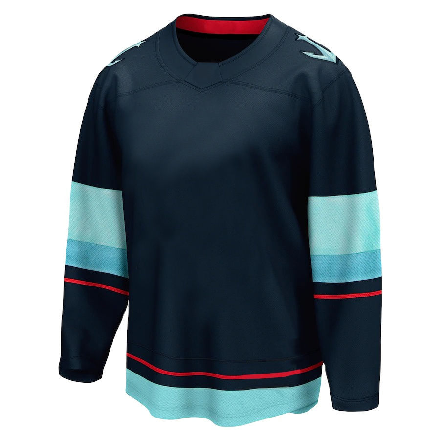 เสื้อฮอกกี้แบบกำหนดเองสำหรับเยาวชนและผู้ชาย แบบเปล่า สามารถสกรีนลายได้ แบบกลับด้านได้ พร้อมงานปักลายสีทอง