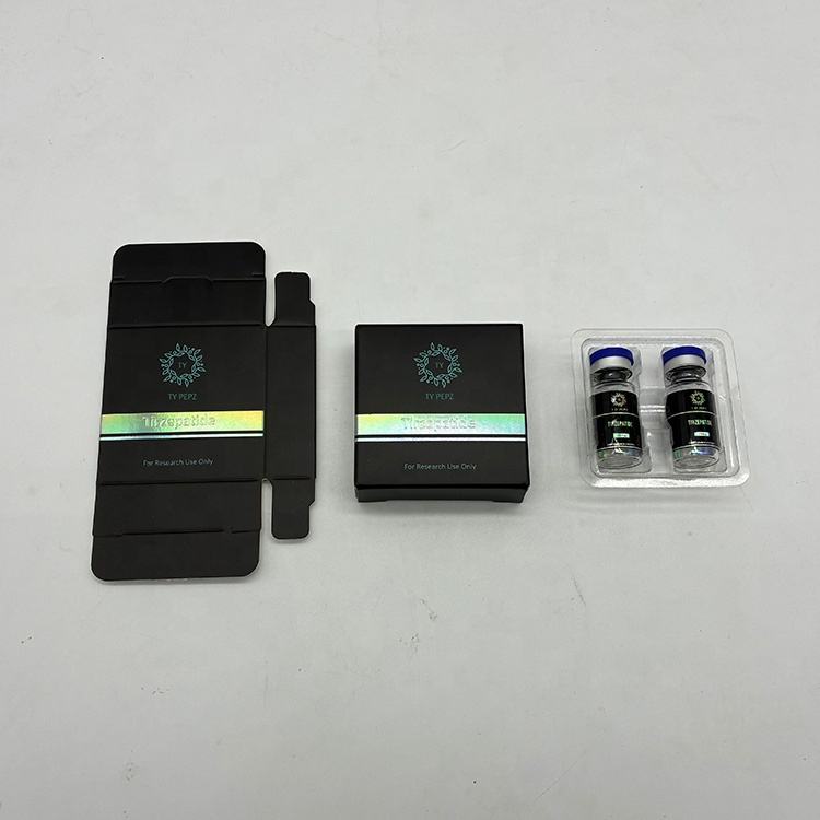 ถาดใส่ขวด 2 ช่อง พร้อมป้ายและกล่องบรรจุภัณฑ์โฮโลแกรมสำหรับผลิตภัณฑ์เปปไทด์ ปั๊มโลโก้ด้วยฟอยล์โฮโลแกรมแบบกำหนดเอง ขนาด 3 มล.