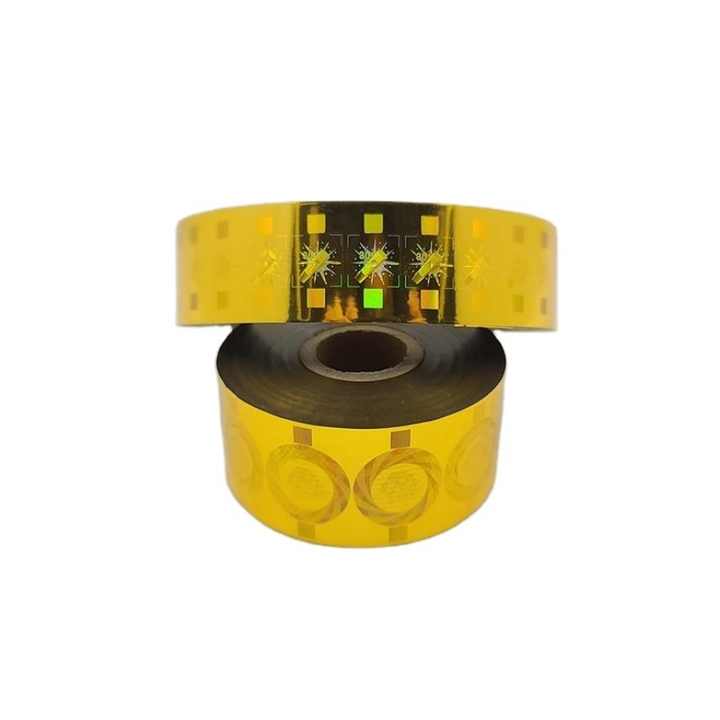 ฟอยล์ปั๊มร้อนโฮโลแกรม PET แบบกำหนดเอง (ใส/เงิน/ทอง/หลากสี) ม้วนสำหรับบรรจุภัณฑ์กระดาษ-ฉลากถ่ายโอนความร้อน