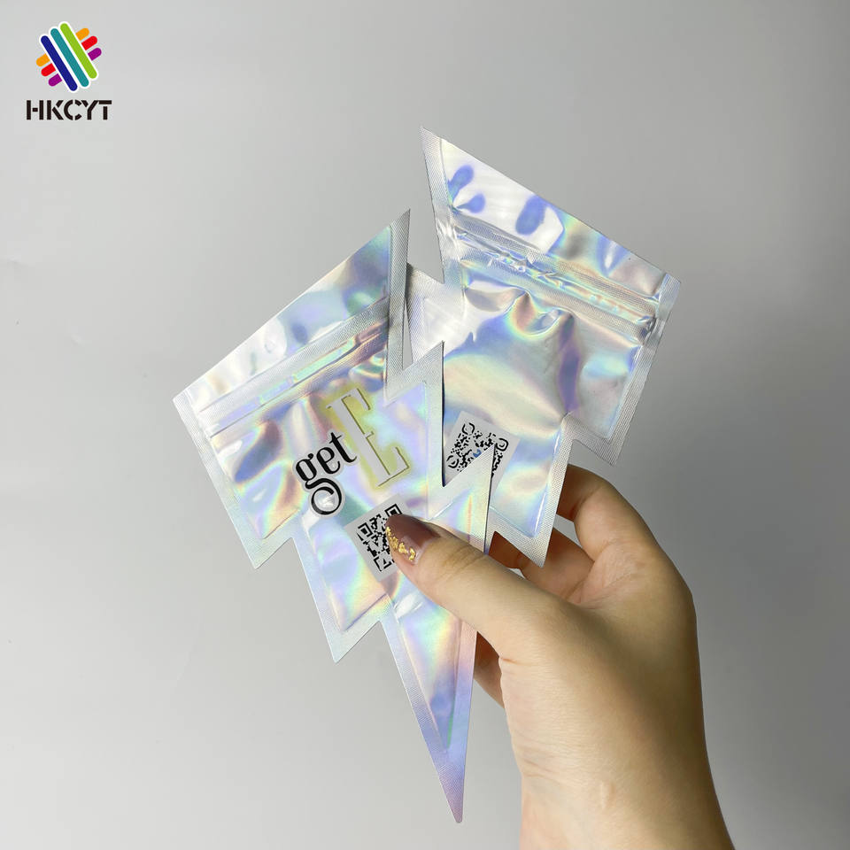 ถุงพลาสติกแบบโฮโลแกรมที่สามารถปรับแต่งได้สำหรับทุกรูปร่างอุปกรณ์เครื่องสำอางแผ่นอลูมิเนียมฟอยล์ PE