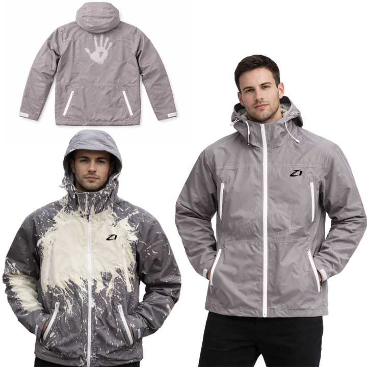 เสื้อแจ็คเก็ตกันลมกันน้ำสำหรับผู้ชาย แบบมีฮู้ด ผลิตจากผ้าไนลอนเปลี่ยนสีตามอุณหภูมิ สำหรับเดินป่า