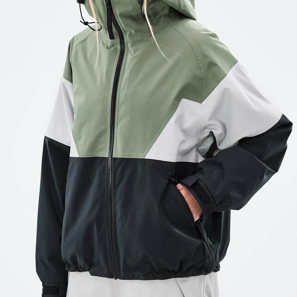 แจ็คเก็ตสกีกันลมมีฮู้ดกันน้ำมีซิปด้านหน้าป้องกันรังสียูวีระบายอากาศอบอุ่นสำหรับกลางแจ้งสโนว์บอร์ดการตั้งแคมป์ในฤดูหนาว