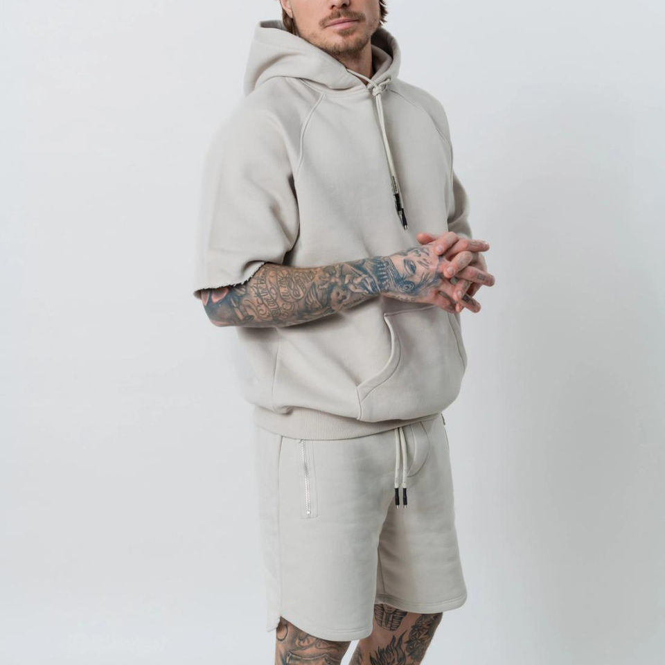 ชุดเสื้อมีฮู้ดและชุดสั้นแบบกำหนดเองปักชิ้นคุณภาพระดับพรีเมียม