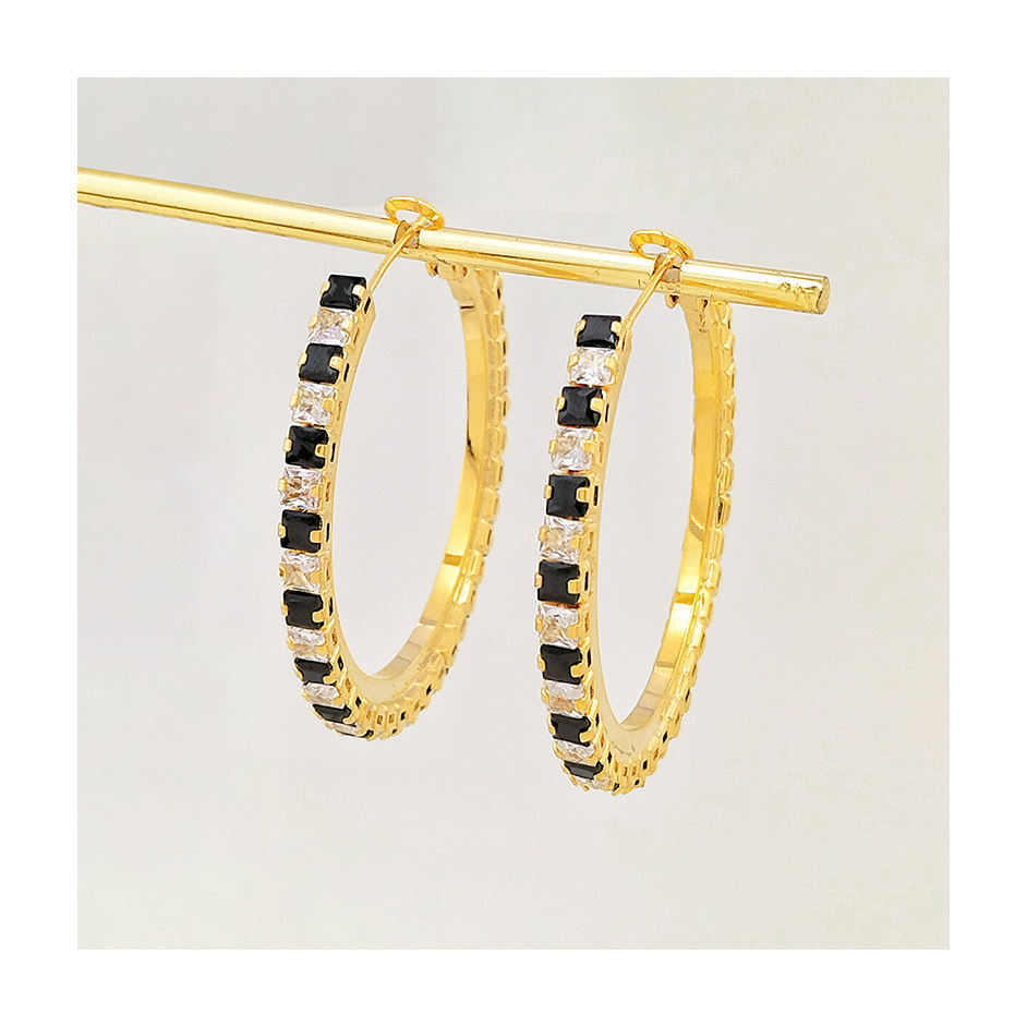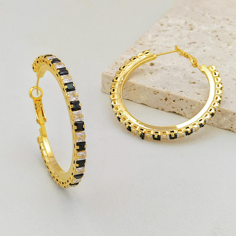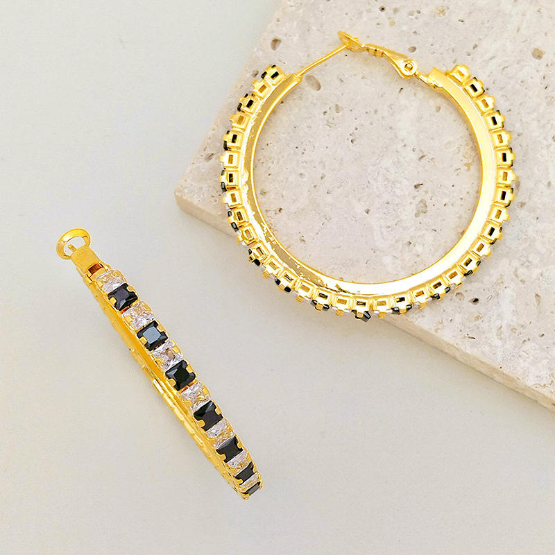 ต่างหูแบบห่วงทำจากคริสตัลสีดำต่างหูห่วงแบบกำหนดเองต่างหูห่วงทรงลูกบาศก์เซอร์โคเนียต่างหูห่วงประดับพลอยเทียม