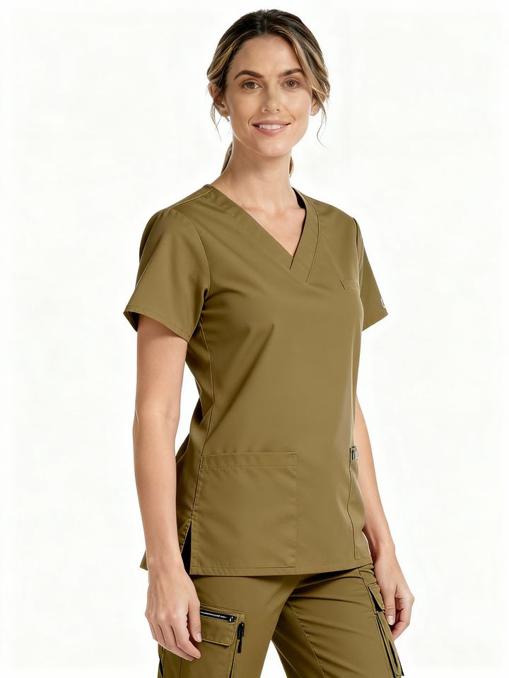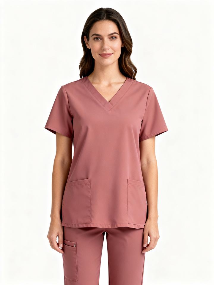 ชุดยูนิฟอร์มพยาบาลโรงพยาบาลแบบสั่งทำพิเศษสำหรับผู้หญิง ผ้ากันยับ คอวี ยืดได้ ชุดสครับพยาบาลแขนสั้น