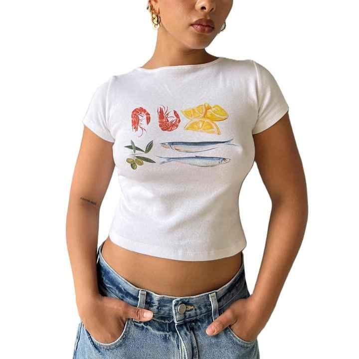 Custom Hot Seal Baby Tee Ladies Cotton Crop Top T-shirts Women's Slim Fit Screen Print T-shirt