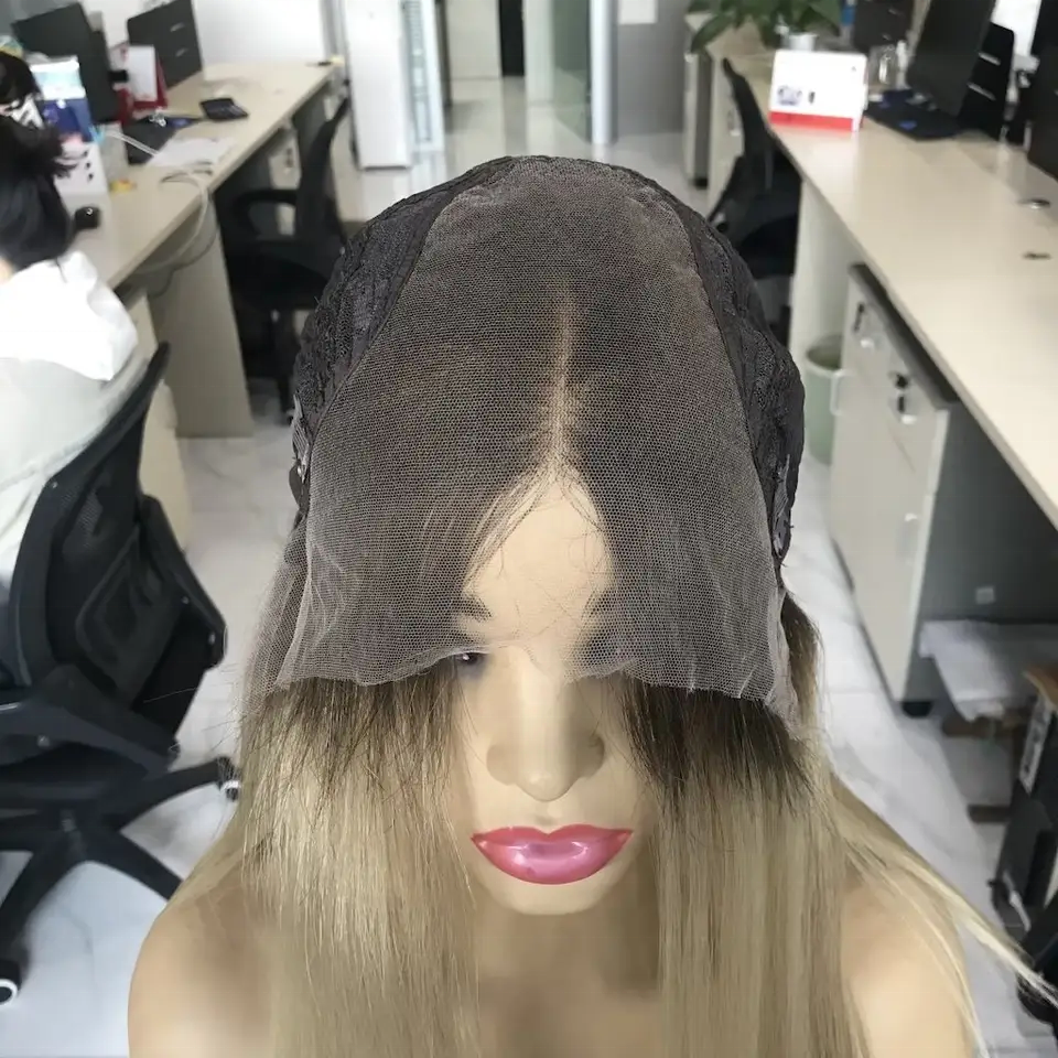 วิกผมมนุษย์ติดหนังกำพร้าบราซิลเลี่ยนวิกผมลูกไม้ด้านหน้าสีออมเบร